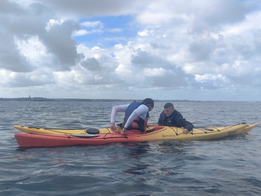 Pour ces premières séances, l’objectif est de tourner efficacement, de savoir remonter sur son embarcation en binôme et de commencer à prendre la météo de manière précise.